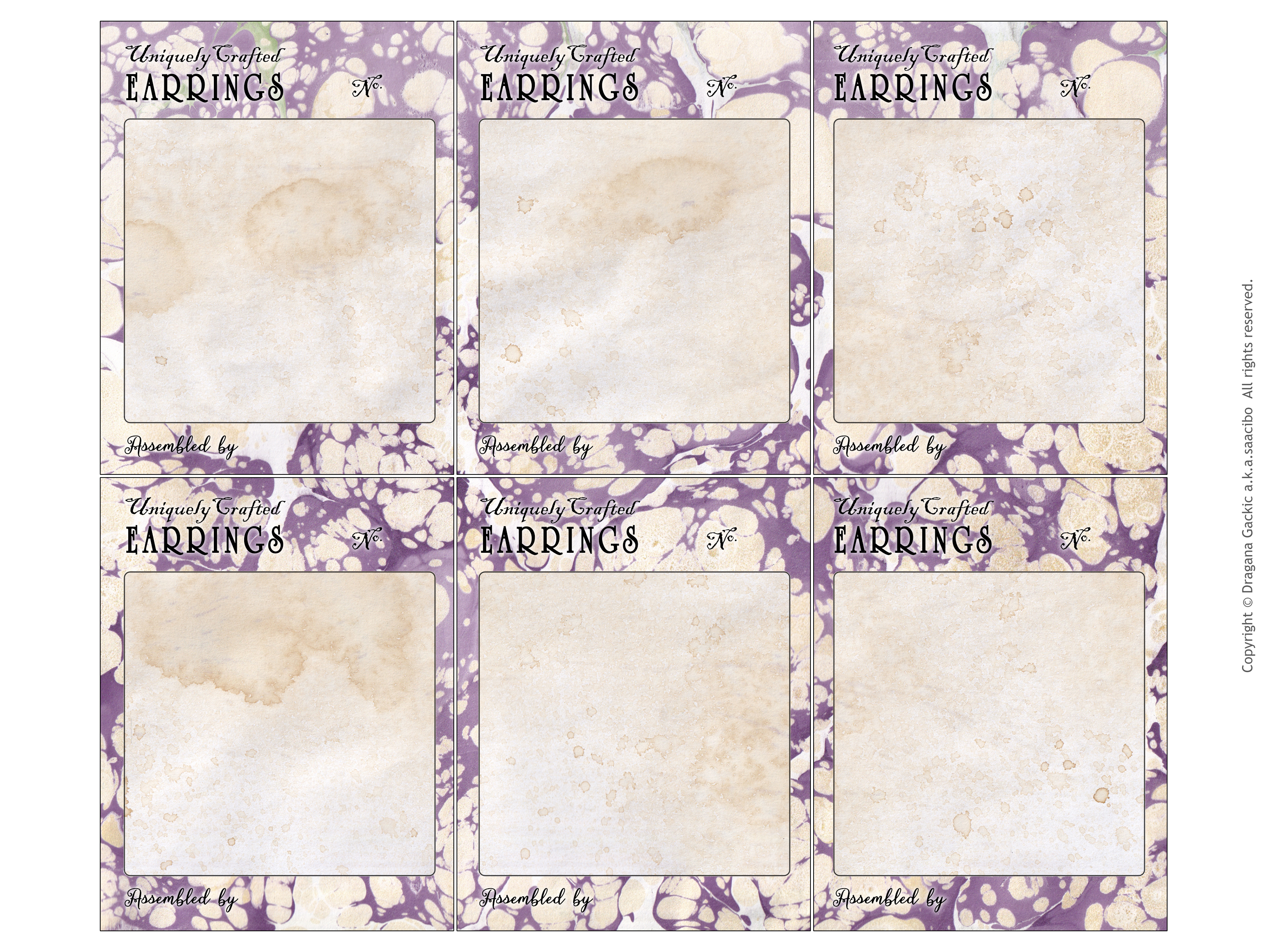 Display paper holder cards for charms, dangles and earrings